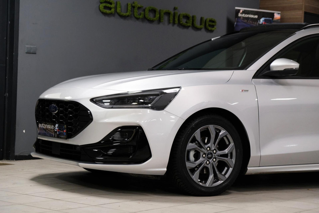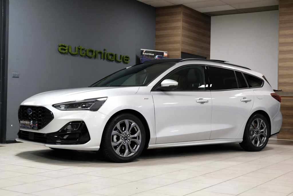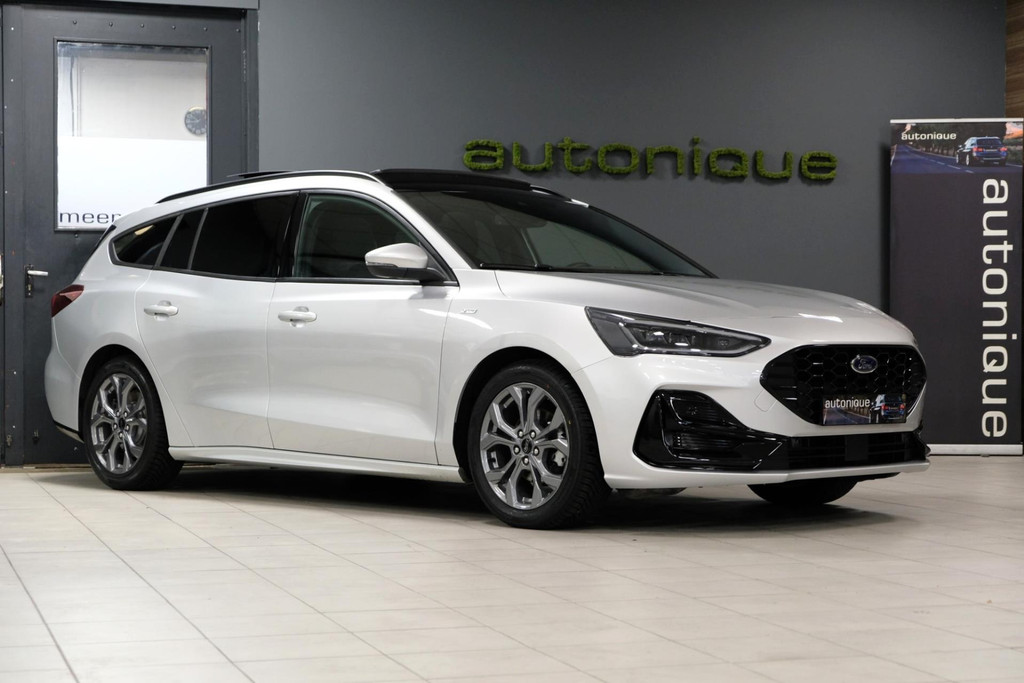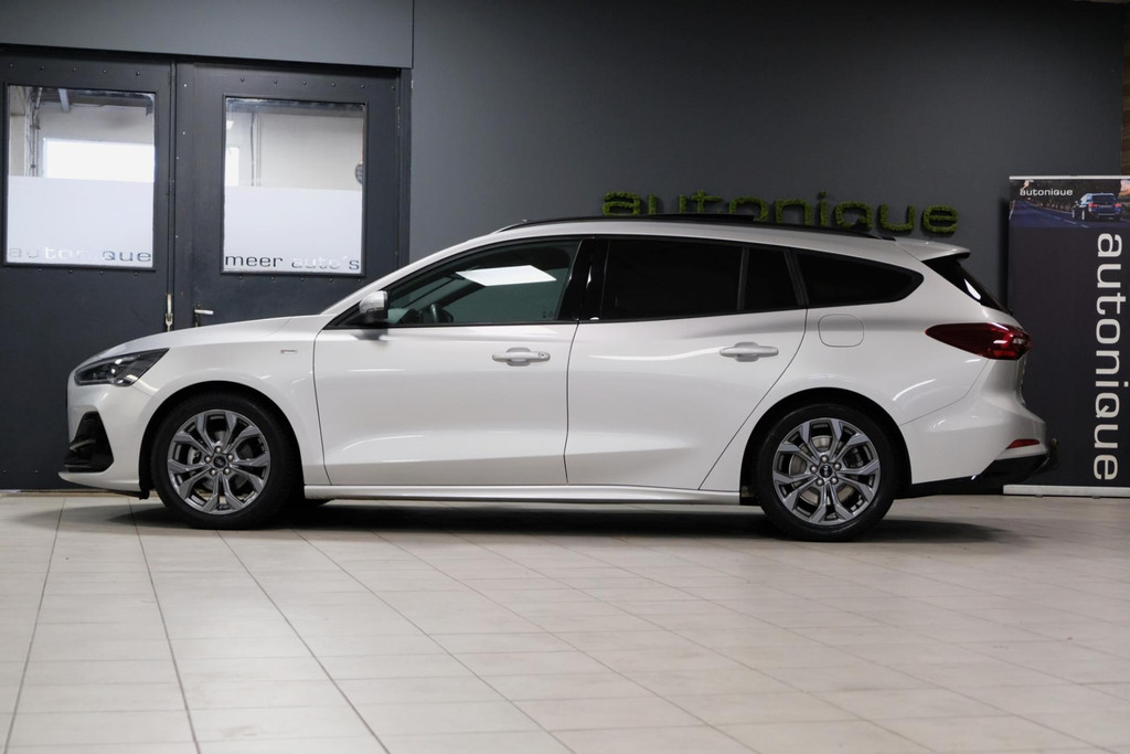 GE-WEL-DIG mooie Ford Focus 1.0 EcoBoost Hybrid ST LINE uit het jaartal 06-2024, met nog maar 50dkm! Bij binnenkomst direct voorzien van 4 splinternieuwe ALL-SEASON banden, met een prachtig mooi PANORAMADAK. Exclusieve ST Line uitvoering met diverse zwarte accenten.