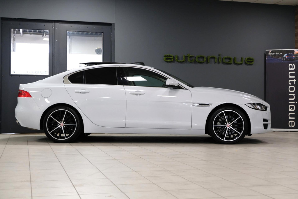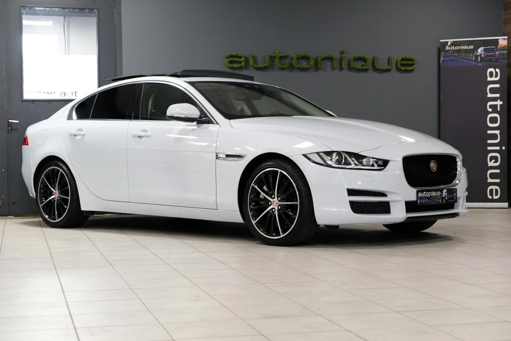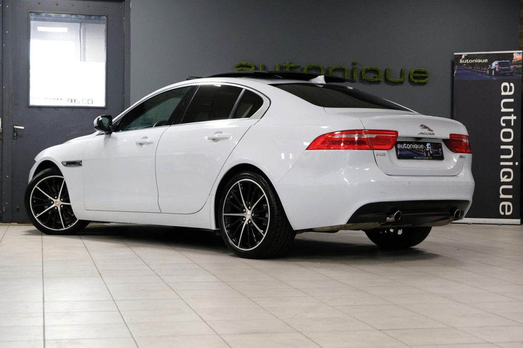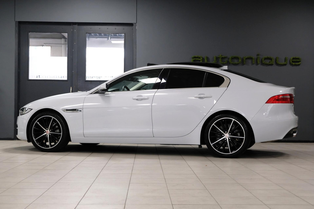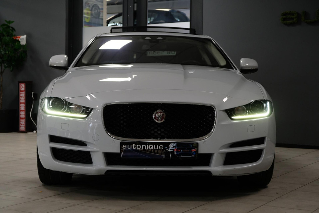 Prachtige exclusieve Jaguar XE 2.0t PORTFOLIO (2.5t met 240pk!!) in schitterende Parelmoer Witte Metallic Lak. Slechts 79dkm!! 2 sleutels en een digitale onderhoudshistorie + onderhoudsboekje. Deze GE-WEL-DIGE Jaguar heeft een PANORAMADAK, en dat is toch wel zeer exclusief te noemen op een Jaguar XE.