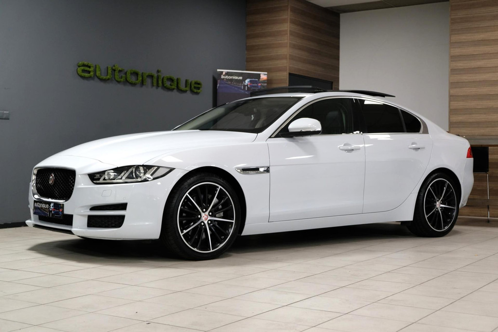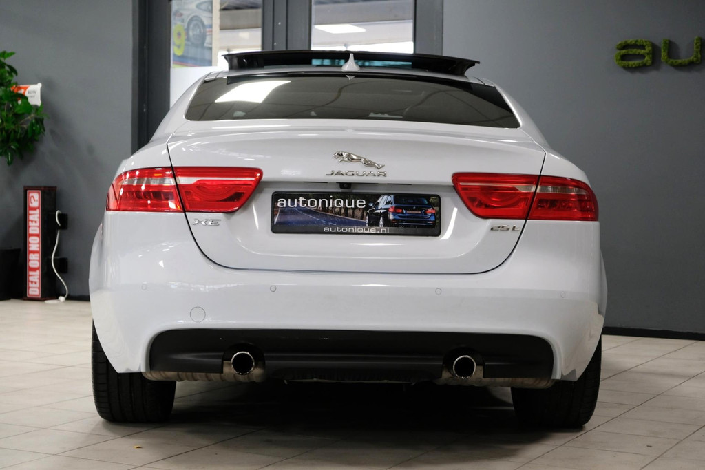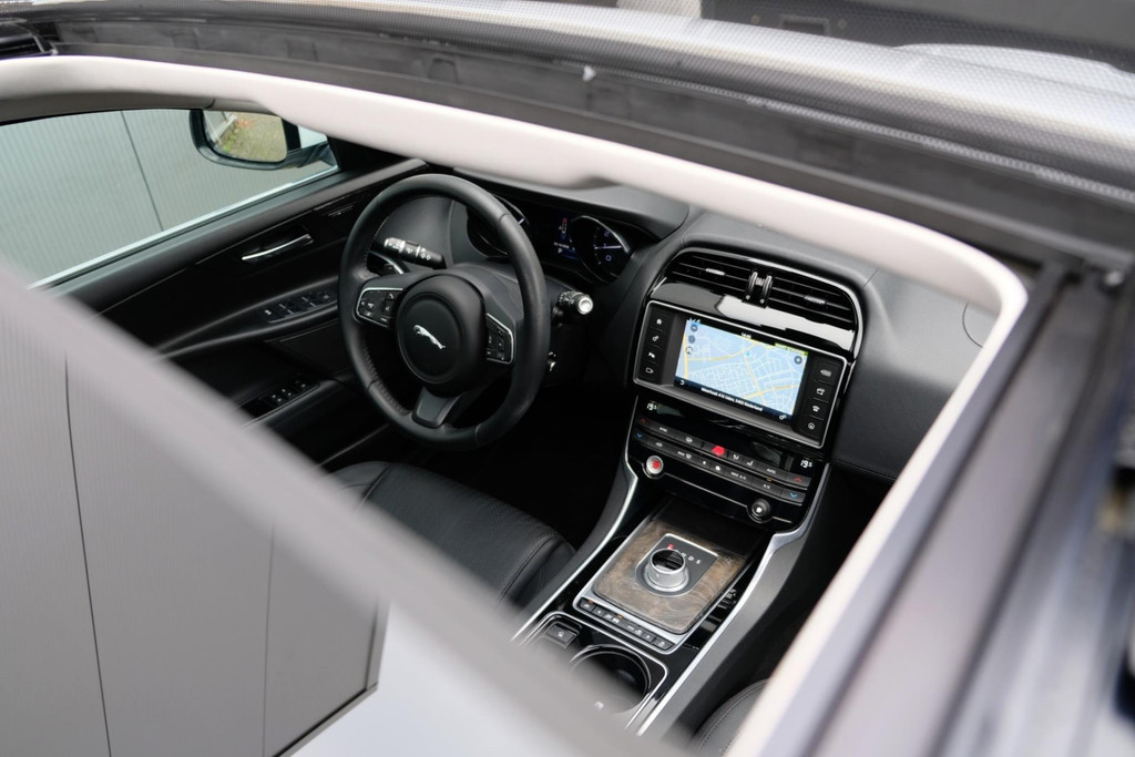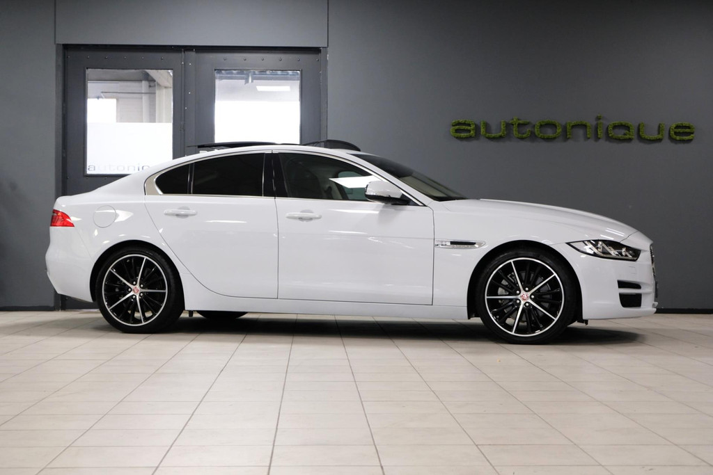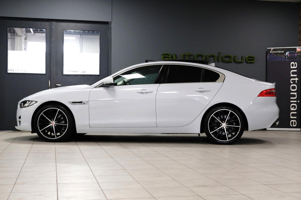 Prachtige exclusieve Jaguar XE 2.0t PORTFOLIO (2.5t met 240pk!!) in schitterende Parelmoer Witte Metallic Lak. Slechts 79dkm!! 2 sleutels en een digitale onderhoudshistorie + onderhoudsboekje. Deze GE-WEL-DIGE Jaguar heeft een PANORAMADAK, en dat is toch wel zeer exclusief te noemen op een Jaguar XE.