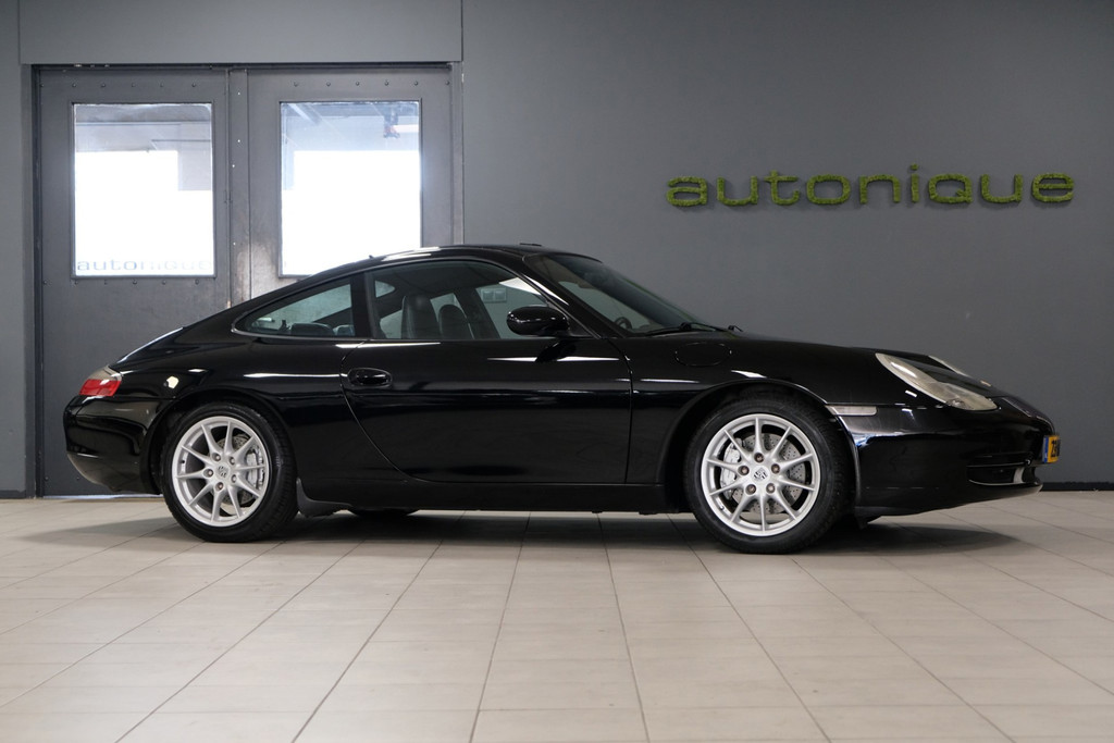 Een zeer correcte Porsche 911 (996) Coupé. Uitgevoerd in de tijdloze kleur Schwarz (L741) met een zwart lederen interieur (BL). Een geliefde handgeschakelde uitvoering in een ingetogen kleurstelling.